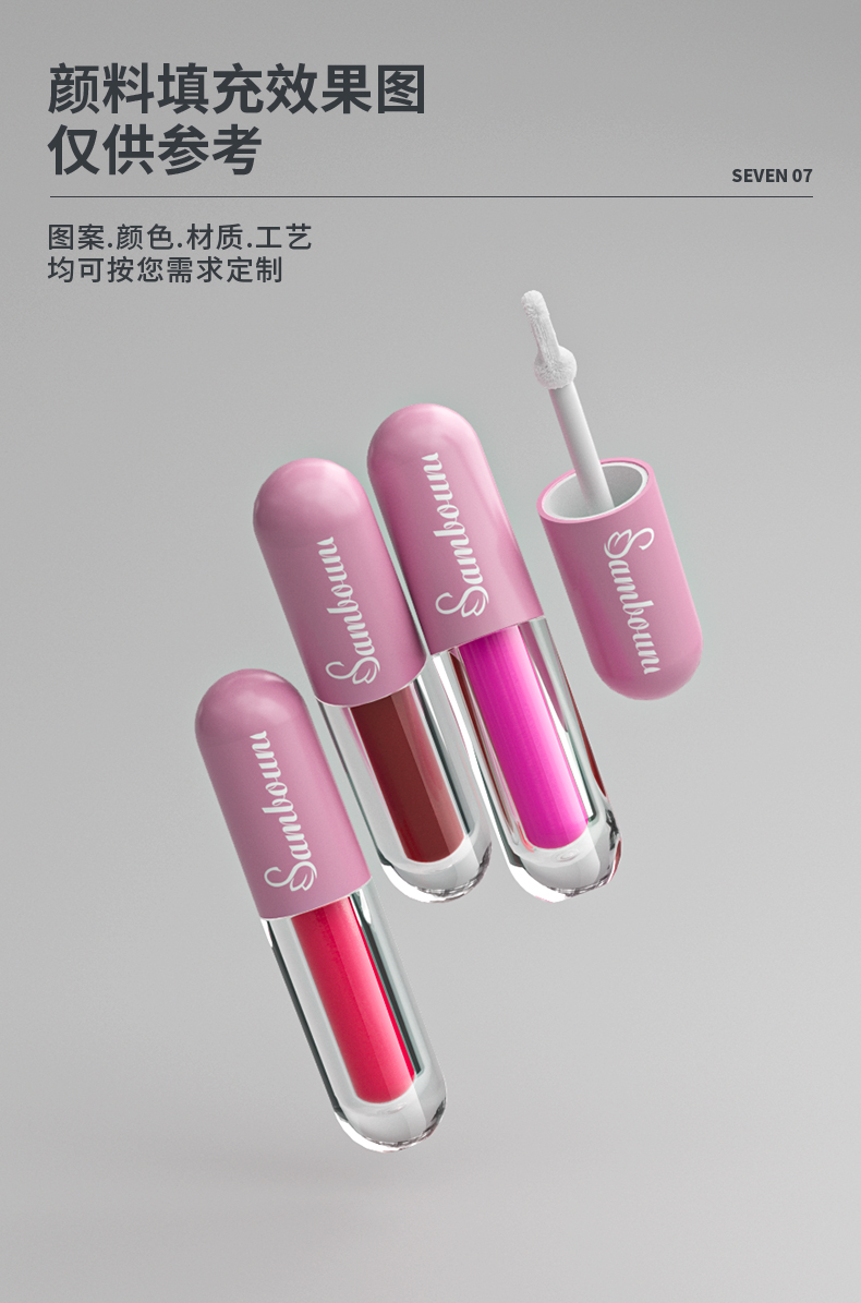 這款膠囊設計空唇泥管特點:加厚瓶身高透明材質,可定制刷頭、顏色及logo,容量3 85ml