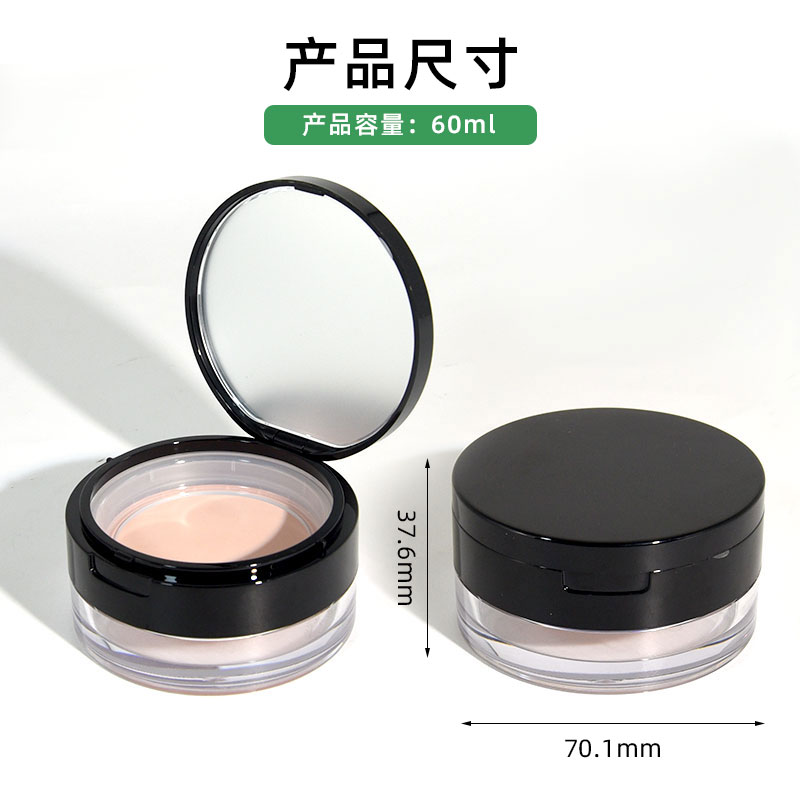 產品名稱散粉盒包材產品貨號YR5068L容量60ML顏色黑色-可定制材質ABS重量32 9g制做工藝注塑包裝方式單個OPP袋裝再用紙箱