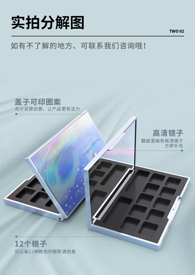 東莞市誠(chéng)邦供應(yīng)12色眼影盤包裝定制,高清鏡面,可以定制不同顏色和logo。