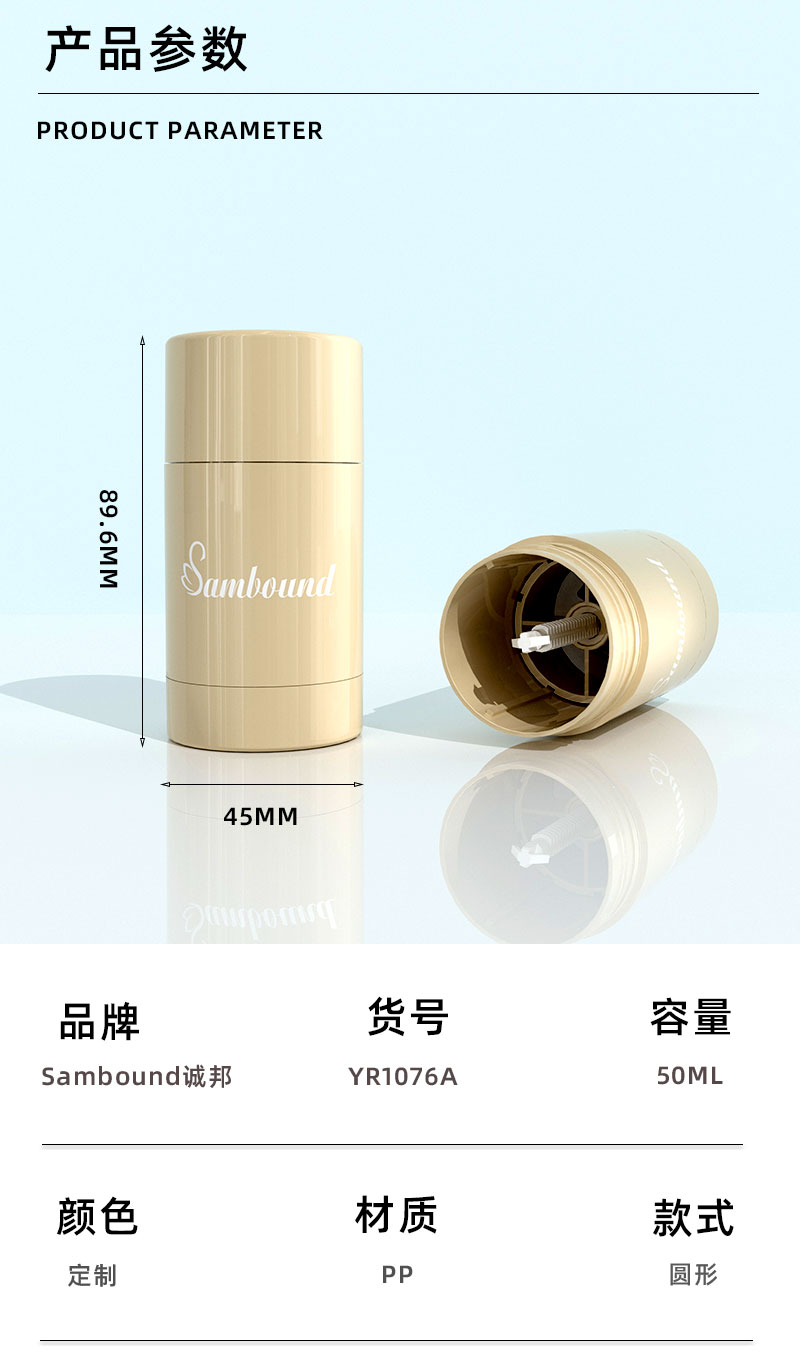 產品名稱止癢棒包材產品貨號YR1076A容量50ML顏色可定制材質PP重量32 9g制做工藝注塑 噴油 真空電鍍包裝方式單個OPP袋裝再用紙箱
