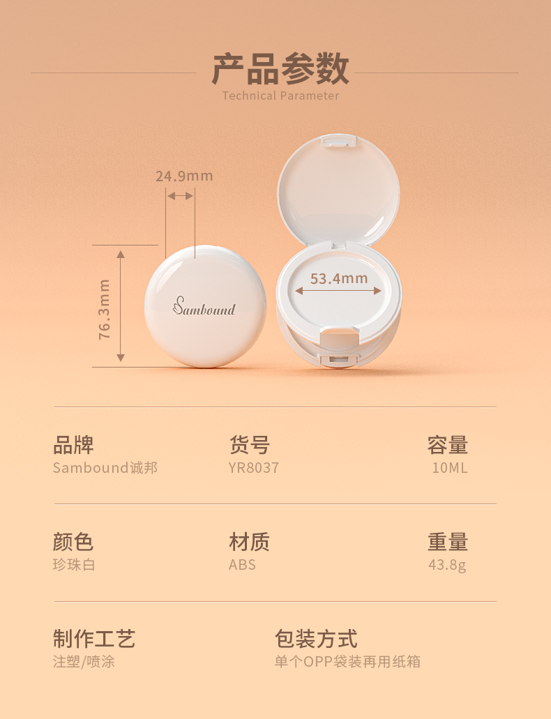 這款帶粉撲層粉餅盒,誠邦圓形空的粉餅盒氣墊盒空盒簡約BB霜盒注塑加工廠,可以為您定制logo顏色,該產品內置高清化妝鏡,10ml容量