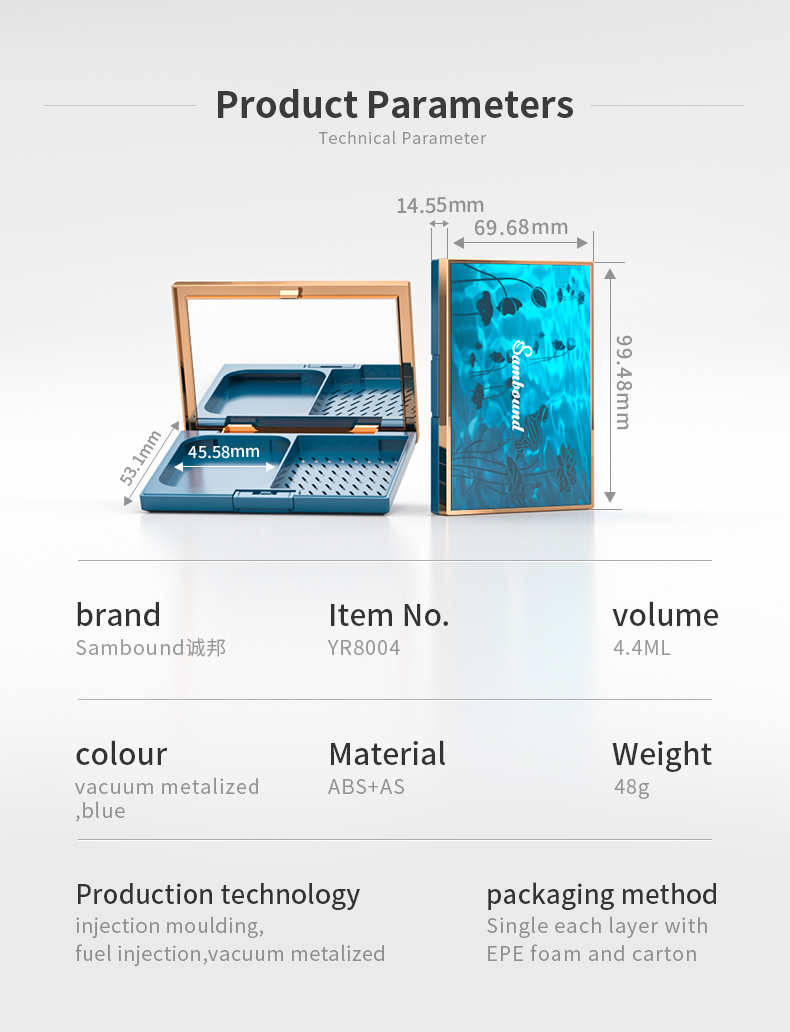 我們東莞市誠邦新材料定制彩妝包材,可以做各種各樣的裝飾,從電鍍,hs,噴涂,uv涂層等,也可以注塑任何顏色